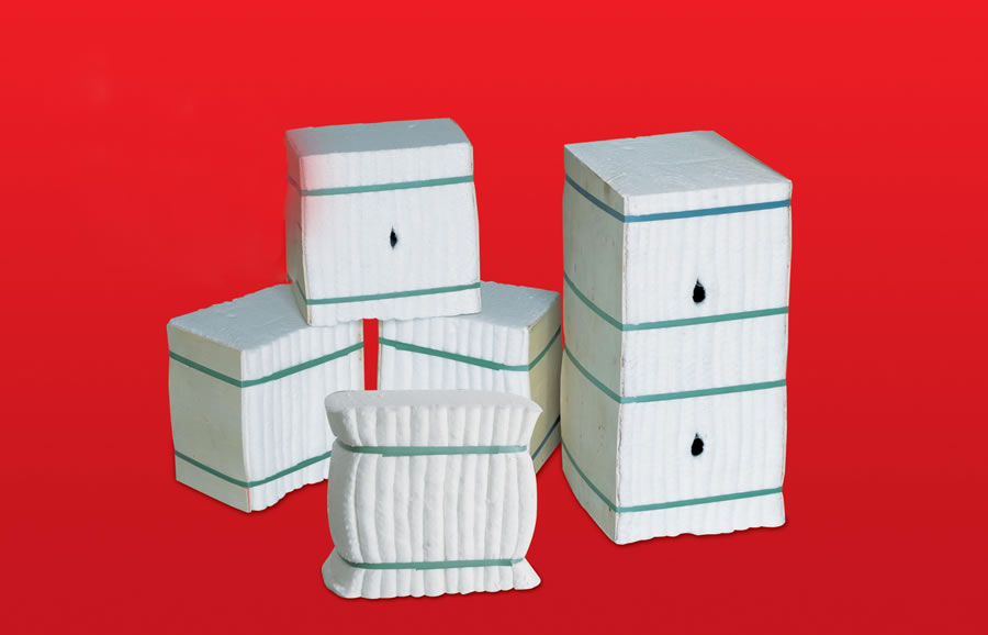 陶瓷纖維模塊選用對(duì)應(yīng)材質(zhì)的陶瓷纖維毯按纖維組件結(jié)構(gòu)、尺寸,由專(zhuān)用機(jī)械設(shè)備加工而成。其保持一定比例的壓縮量,以保證陶瓷纖維組件壁襯砌筑完畢后,陶瓷纖維組件在不同方向的膨脹,使陶瓷纖維組件之間相互擠成一個(gè)無(wú)縫隙的整體。陶瓷纖維組件通過(guò)各種形式的錨固件直接固定于工業(yè)窯爐爐殼上